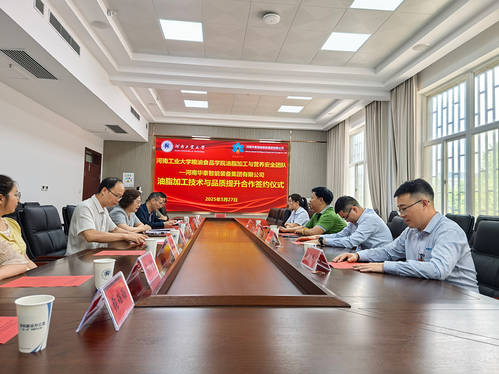 簽約儀式上,雙方代表就油脂加工技術(shù)研發(fā)、產(chǎn)品創(chuàng)新和人才雙驅(qū)培養(yǎng)等方面展開深入交流。下一步,雙方將圍繞油脂加工智能裝備升級、品質(zhì)突破提升、人才生態(tài)共建等核心方向展開深度合作:融合華泰智能裝備集團(tuán)工業(yè)4.0制造經(jīng)驗與河南工大核心技術(shù),開發(fā)新一代智能化油脂精煉系統(tǒng),實現(xiàn)生產(chǎn)能耗降低、出品率提升。聚焦特種油脂、高附加值營養(yǎng)油脂領(lǐng)域,攻克功能性油脂制備技術(shù)瓶頸,推動產(chǎn)品品質(zhì)對標(biāo)國際一線標(biāo)準(zhǔn)。設(shè)立聯(lián)合創(chuàng)新中心,通過共建產(chǎn)學(xué)研合作平臺、碩士聯(lián)合培養(yǎng)、工程師雙聘機(jī)制,聯(lián)合開展科研項目等,實現(xiàn)資源共享、優(yōu)勢互補(bǔ),培養(yǎng)適應(yīng)行業(yè)發(fā)展需求的高素質(zhì)專業(yè)人才;打造油脂加工領(lǐng)域產(chǎn)學(xué)研用一體化人才高地。