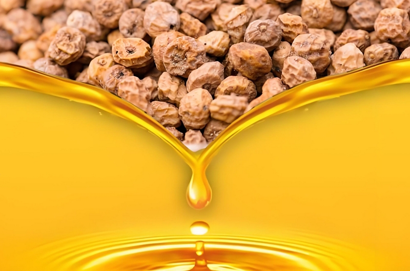 油莎豆油脂含量高達35%左右,因其富含不飽和脂肪酸(飽和酸20%、油酸64%、亞油酸11%、亞麻油酸2%),品質(zhì)好,因此與橄欖油和杏仁油相媲美。油莎豆的出油率比較客觀,每公頃油莎豆可產(chǎn)1200-1800 kg油脂,其單位面積油脂產(chǎn)量是大豆的4倍,油菜的2倍,花生的1.5倍,得到的油脂油酸含量70%以上,與高油酸花生油很接近,是種營養(yǎng)價值較高的食用植物油。那么油廠在生產(chǎn)油莎豆油時,都需要用到哪些設(shè)備呢?一起來了解一下吧!